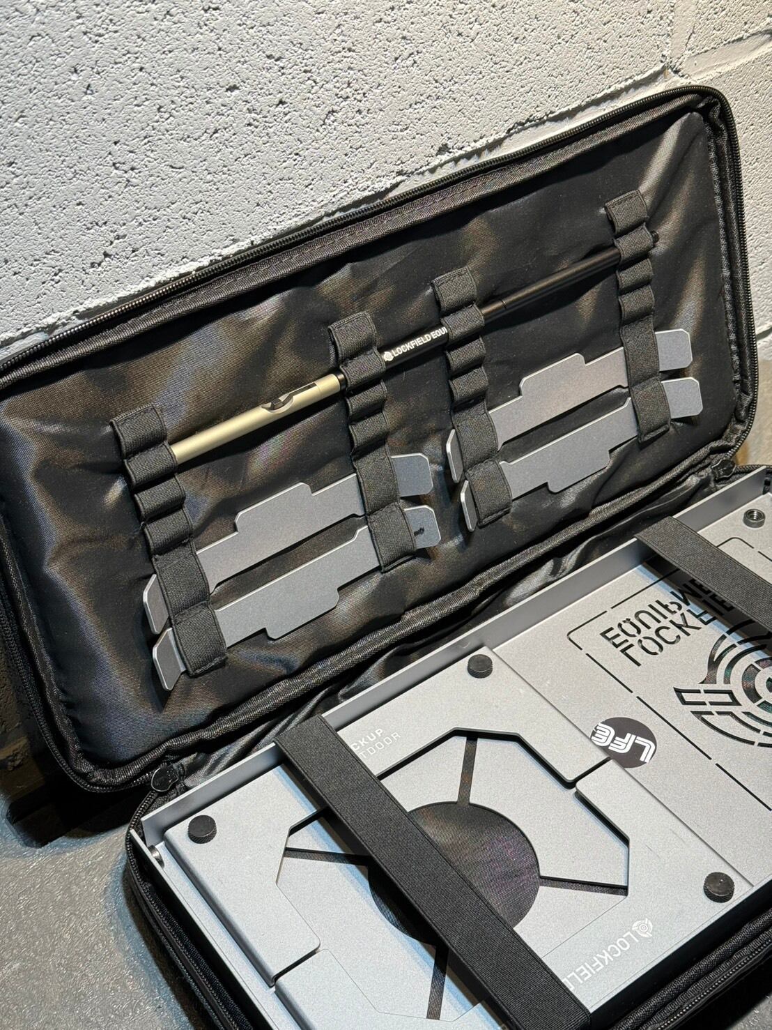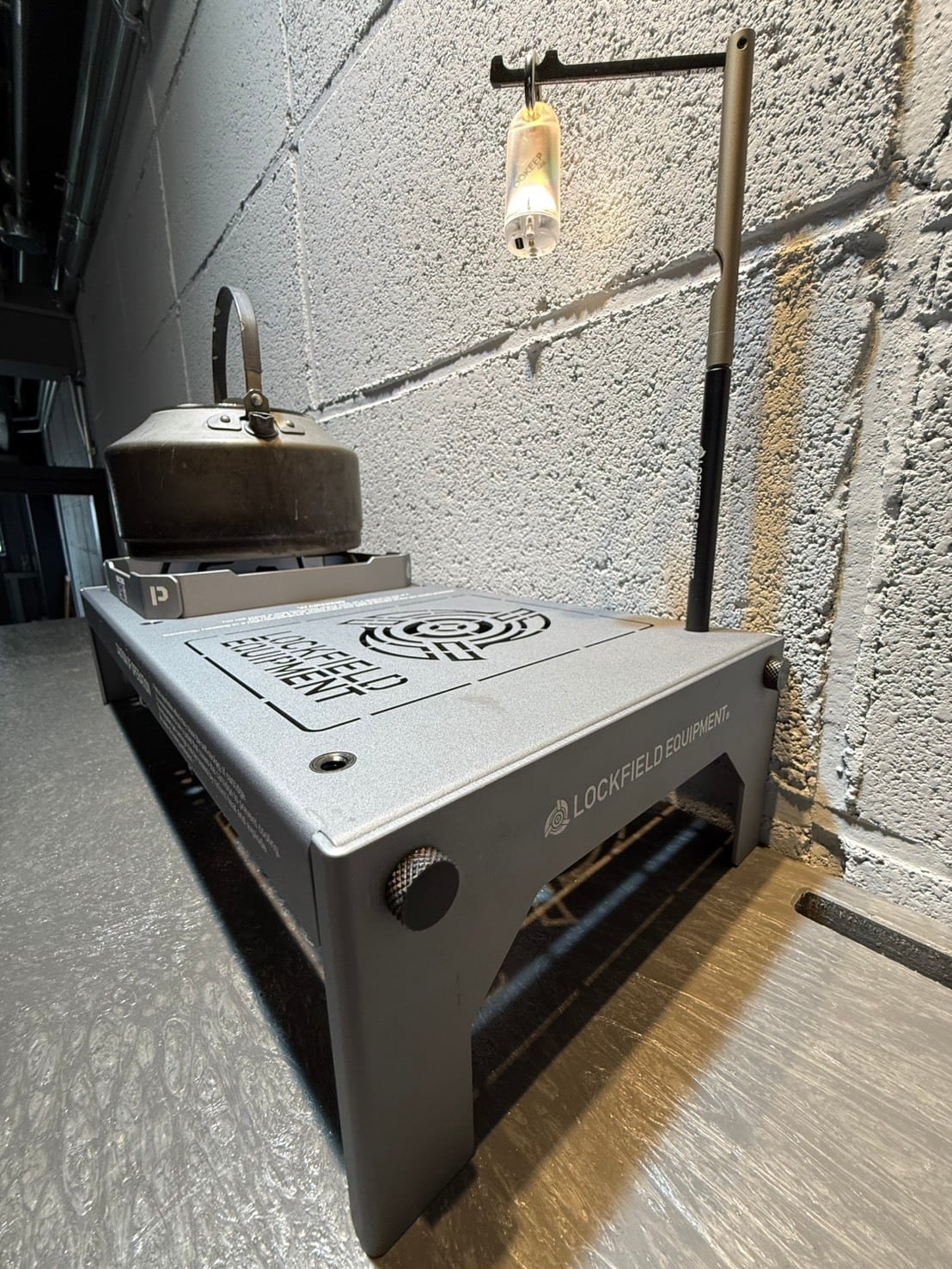 SOTO ST-310 / ST-340用のテーブル です。TAIWANのPACK UP OUTDOORとのコラボ製品。PACK UPオリジナルから本体カラーをGRYシルバーに変更、天面LFEロゴをレーザー加工によって再現しました。天面には1/4カメラネジ雌が6カ所設けてありますので、ランタンハンガーやその他アイデア次第で拡張可能となっています。その他細部にわたる印刷表記も拘ったポイントです。